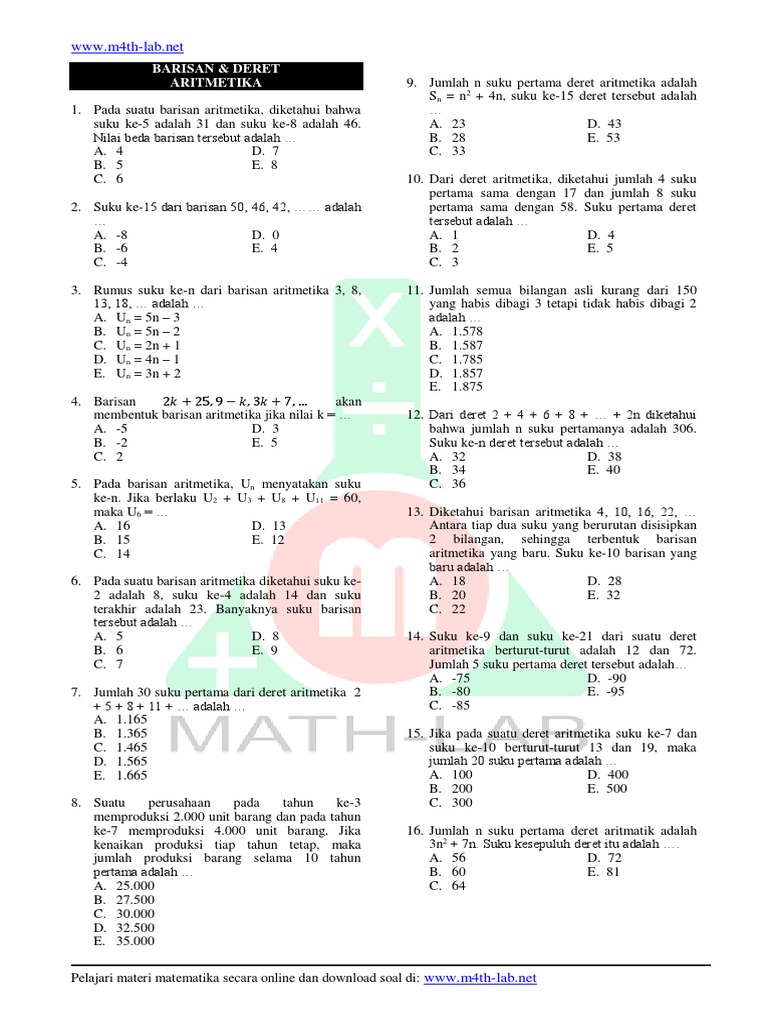 Soal Dan Pembahasan Barisan Dan Deret Aritmatika from 1.bp.blogspot.com We did not find results for: Jika jumlah n suku pertama suatu barisan adalah 4n2(n+1). Check spelling or type a new query. Maybe you would like to learn more about one of these?