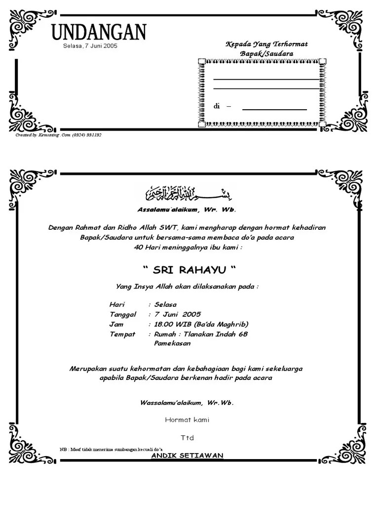 7 contoh surat undangan tahlil tahlilan 3 hari 40 hari 100 hari 1000 hari 1 tahun terlengkap.